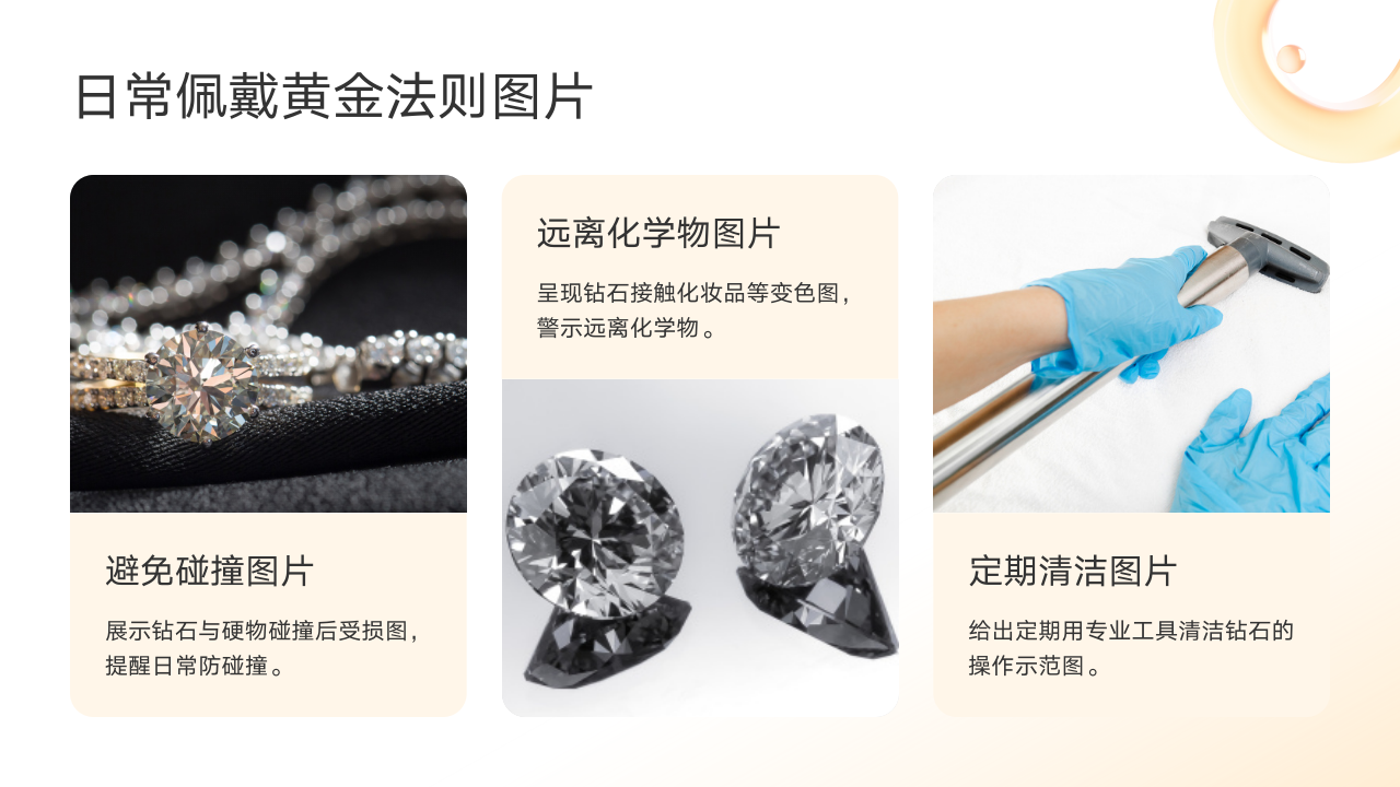 钻石首饰的损伤大多发生在日常佩戴中。遵循以下法则,能极大降低风险。