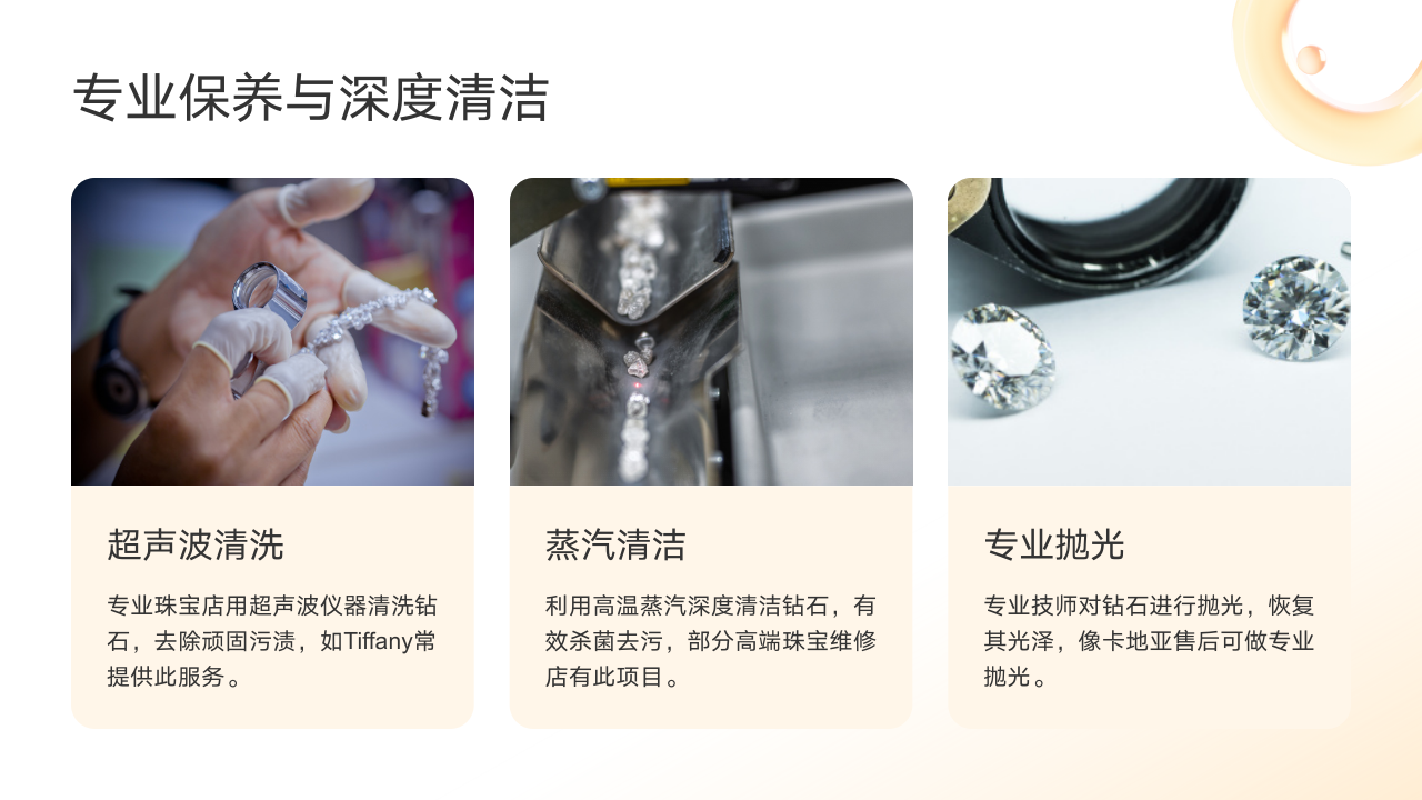 1.专业蒸汽/超声波清洁:珠宝店拥有更专业的设备,能进行更深层次的清洁。