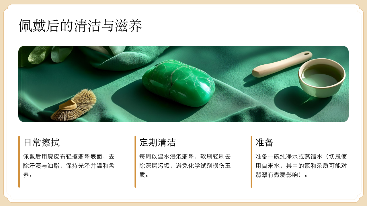 保养高端翡翠,是一场充满耐心与爱意的过程。它不仅是遵循步骤,更是与珍贵艺术品建立情感连接的桥梁。每一次轻柔擦拭、每一次精心呵护,都是对美的珍视与尊重。