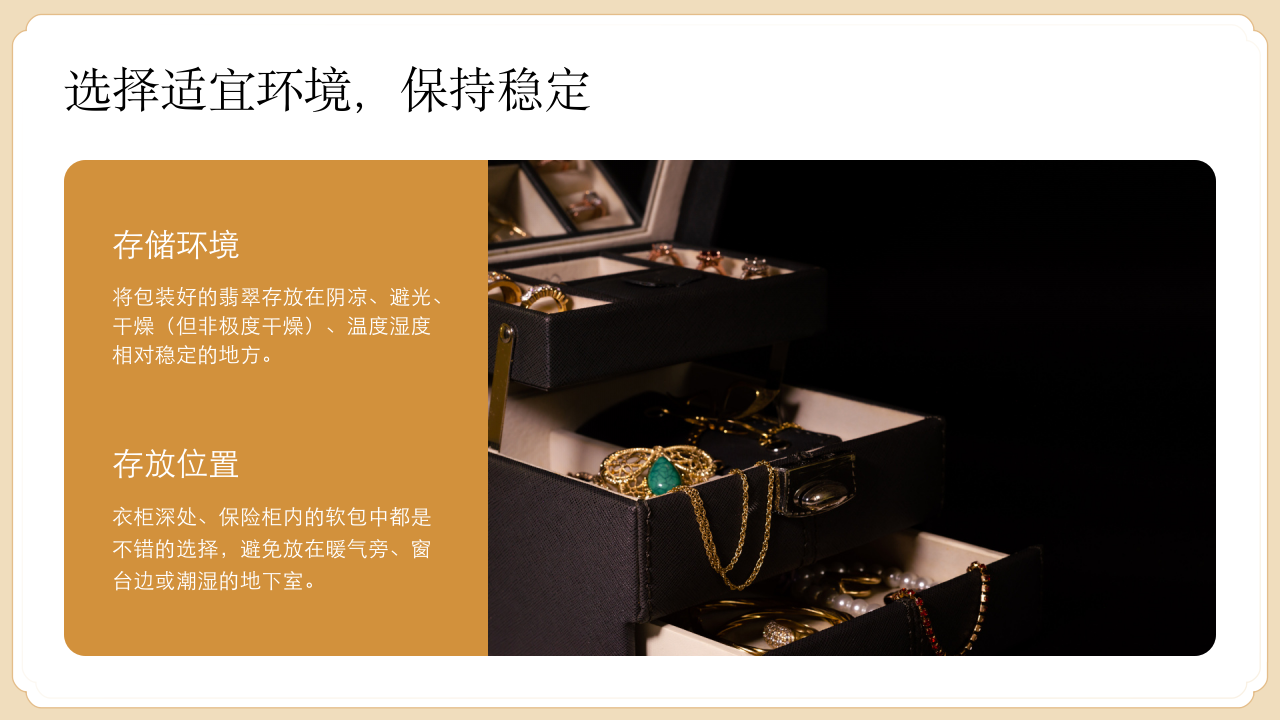 不佩戴或长期收藏时,正确的存放方式至关重要: